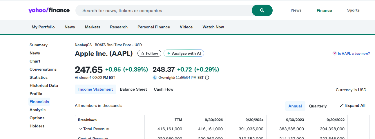 👉 Yahoo Finance 손익계산서를 기준으로, 초보자에게 도움되는 ‘읽는 순서’를 알려드립니다.
